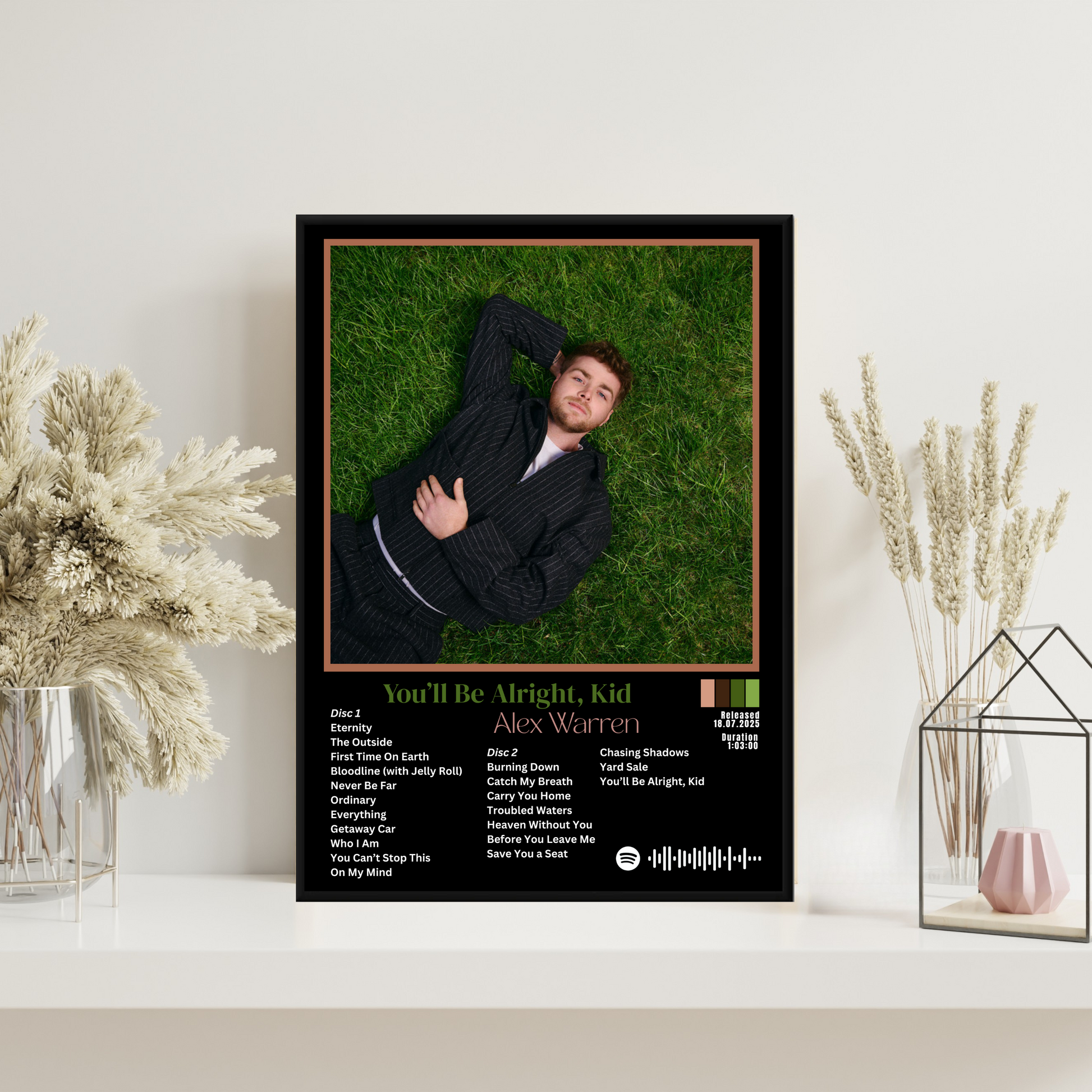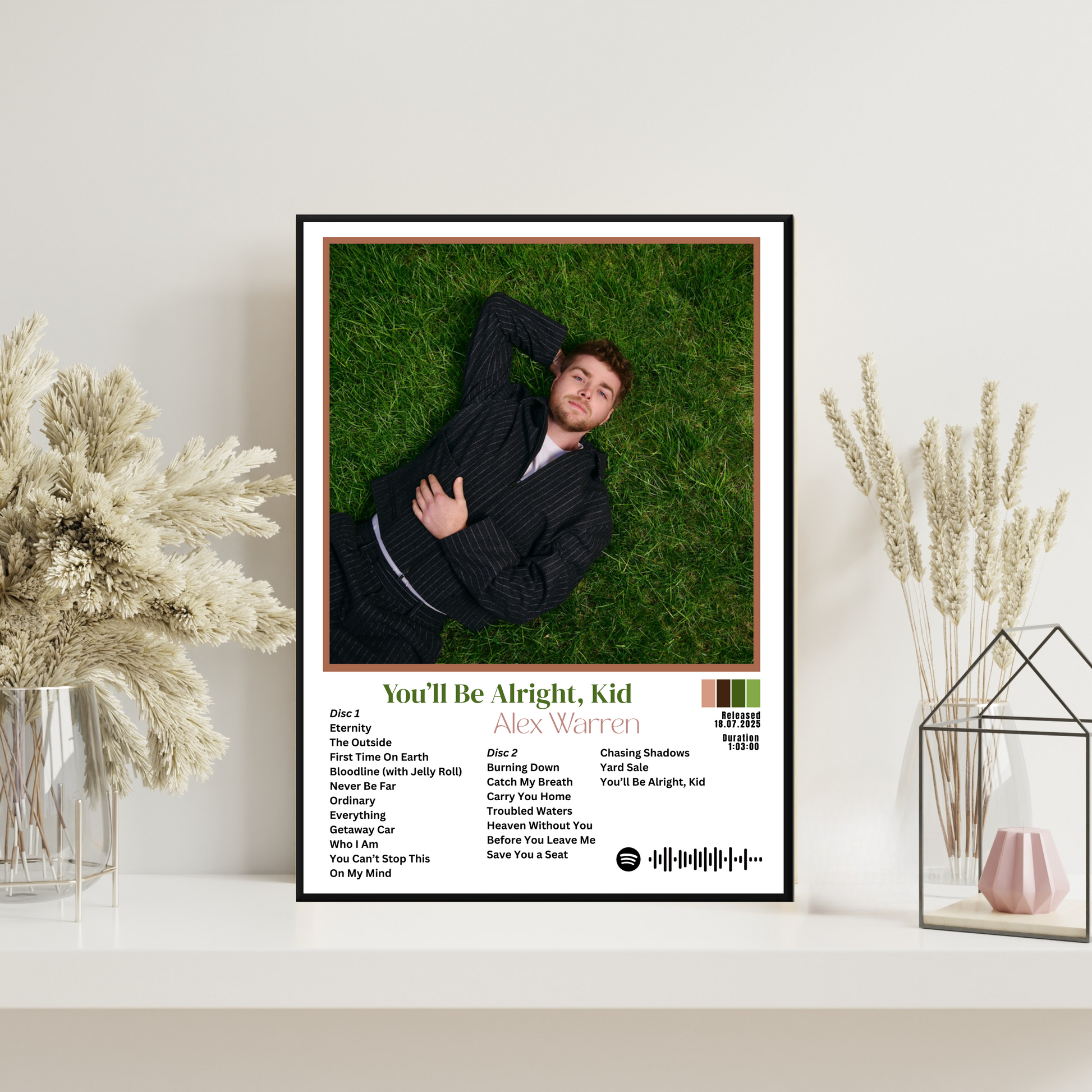 Celebrate your love of music with our Alex Warren You'll Be Alright, Kid Poster. Designed to bring a modern, artistic touch to your walls, this piece is perfect for music lovers and makes a standout addition to any room. Ready to hang and enjoy the moment it arrives✨