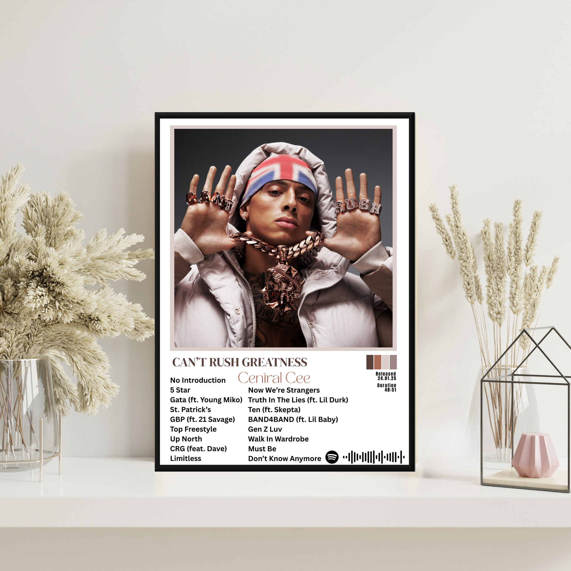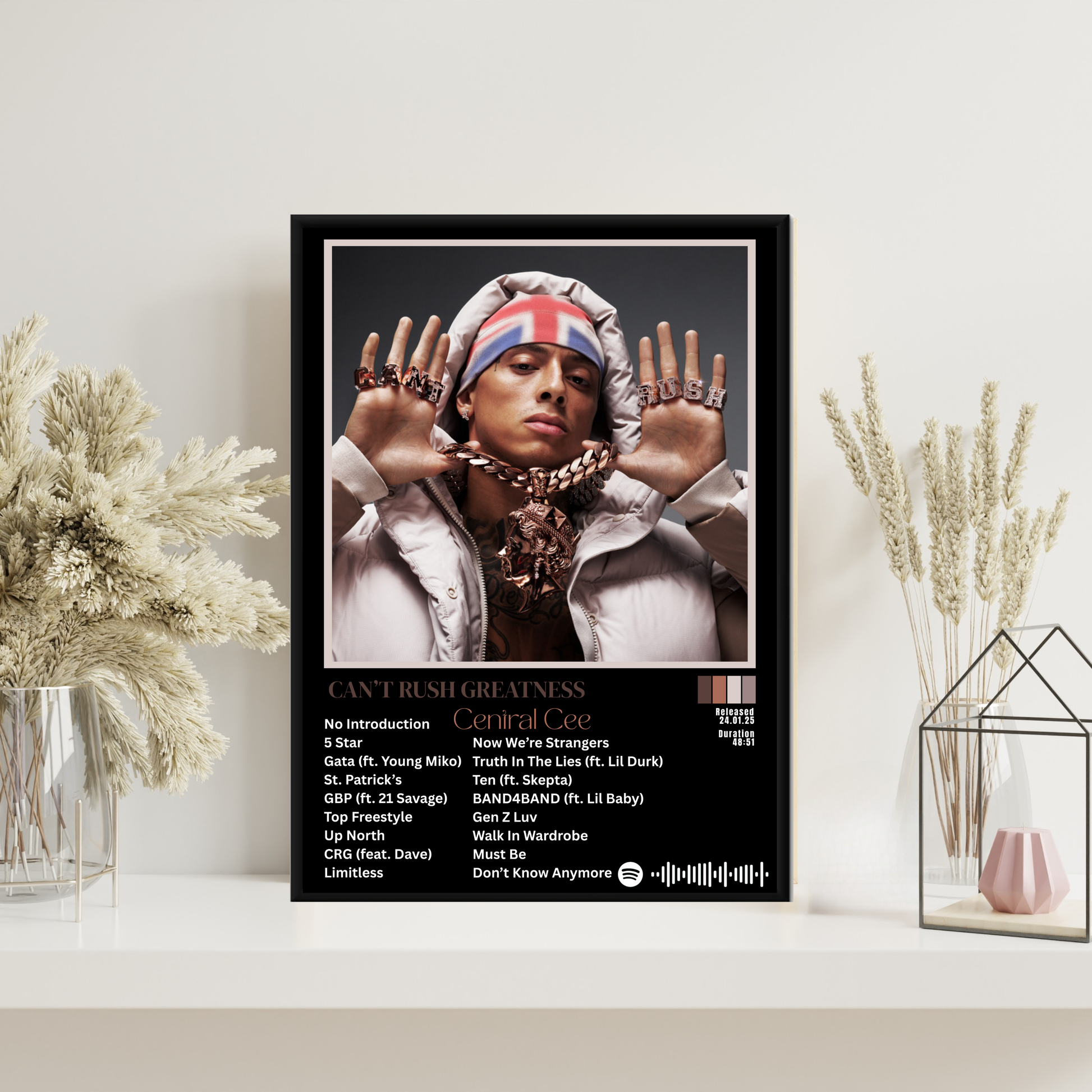 Celebrate your love of music with our Central Cee Can't Rush Greatness Poster. Designed to bring a modern, artistic touch to your walls, this piece is perfect for music lovers and makes a standout addition to any room. Ready to hang and enjoy the moment it arrives. ✨