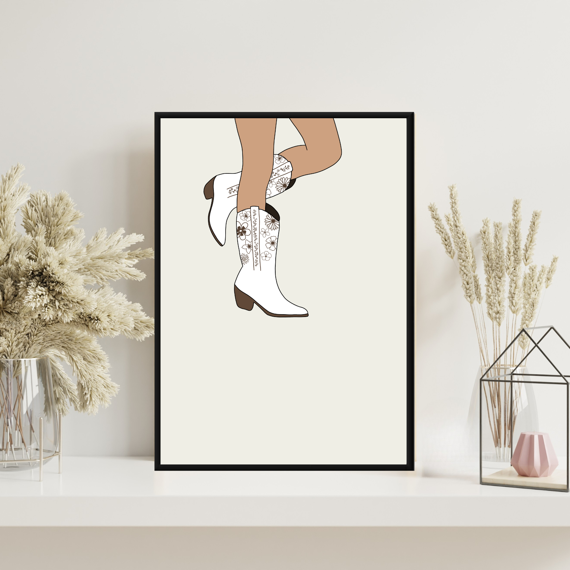 Step into western charm with our hand-drawn Cowgirl Kicks Poster. Featuring a bold, modern illustration of legs in classic cowgirl boots, this piece adds a touch of playful attitude to your space. Perfect for lovers of western style, fashion, or statement art, it’s designed to stand out on any wall. Ready to hang and enjoy the moment it arrives ✨